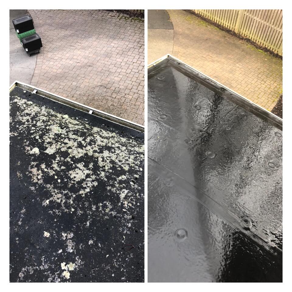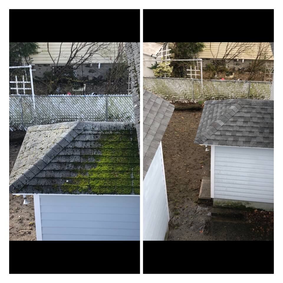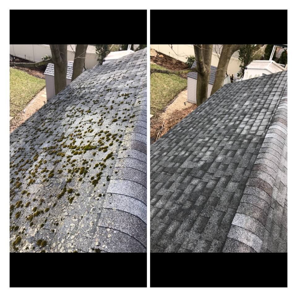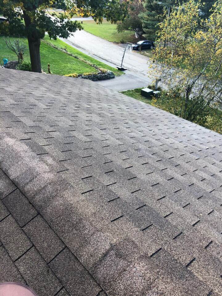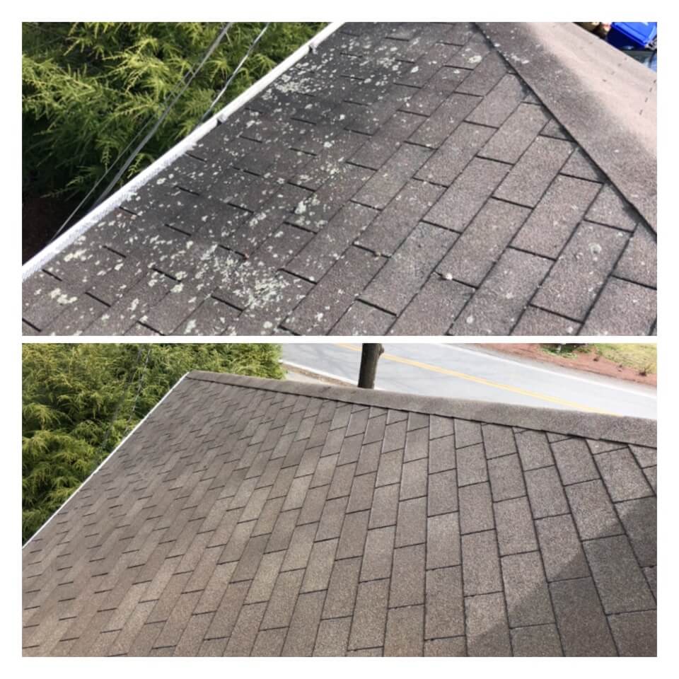 HiCleaners is the most experienced company in Brookline, MA that deals with roof washing and roof soft washing. All of our employees are trained to recognize precise solution mixing ratios to provide you with the safest and most effective soft washing service. Roofs are a commonly neglected part of a house due to the fact that most people don’t have ladders to access it, so it is very easy to just leave it alone and forget about problems that may start to arise. Just like many home owners, discoloration and small bits of moss on a roof can be overlooked because of the misconception that it is just aesthetic. However, it isn’t just aesthetic, the moss slowly lifts the granules off the shingles which in turn shorten the life of the shingle. The moss also spreads, just like any bacteria if it is left alone for too long, it can quickly become a problem that spirals out of control. Call HiCleaners for a free quote, we only use the most advanced eco-friendly solutions and equipment to make sure the job is done right, for the safety of the employees, your plants, grass, pets, and children.